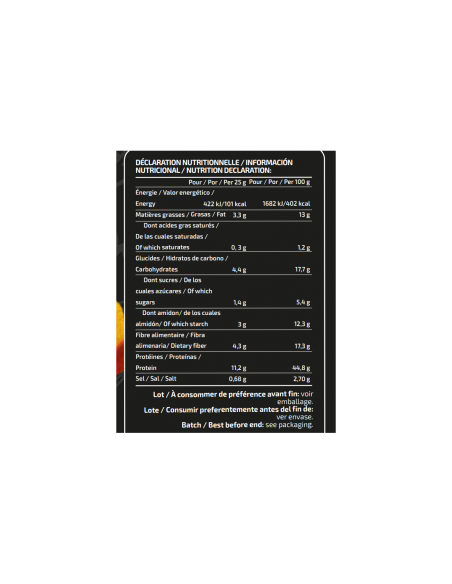 Este contenido en proteínas se consigue gracias a la selección minuciosa de sus ingredientes, como su ingrediente mayoritario, concentrado de proteína de soja o la proteína de leche.