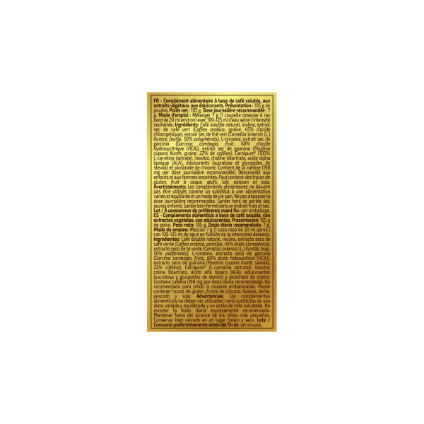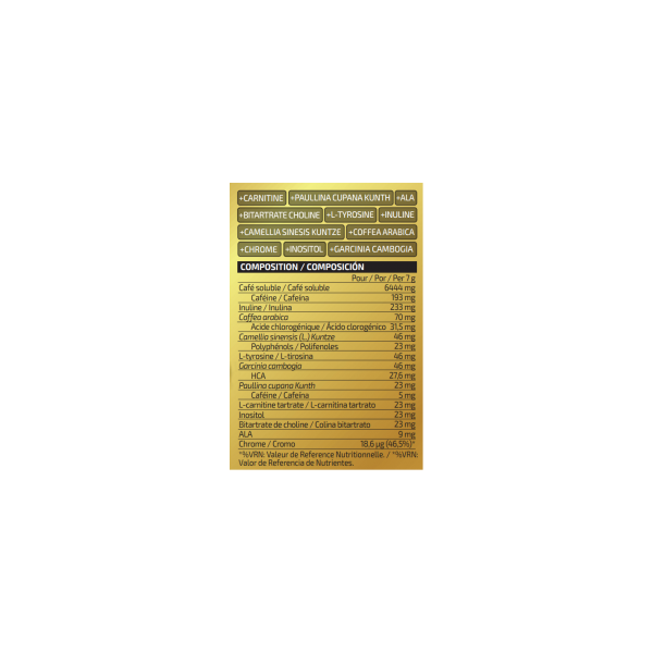 Se trata de un café soluble en polvo que aparte de contar con un increíble aroma y sabor gracias a la variedad arábica, incluye otros ingredientes de efecto sinérgico que hemos elegido minuciosamente para convertirlo en un café perfecto para acompañarte en tus objetivos del día a día.