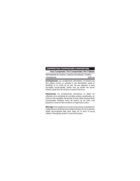 - Cada comprimido contiene 1 g de creatina monohidrato.
