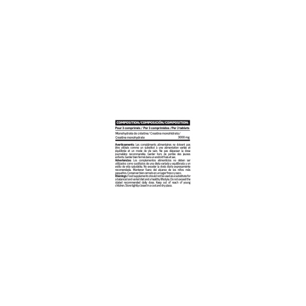 - Cada comprimido contiene 1 g de creatina monohidrato.