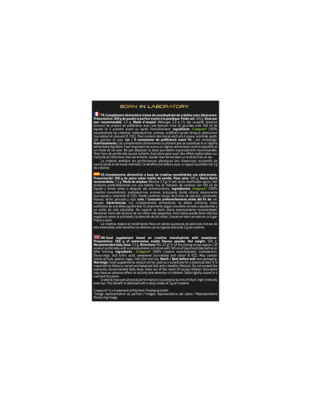 Creatina monohidrato 100% creapure ® en polvo, disponible tanto en sabor neutro como en distintos sabores.