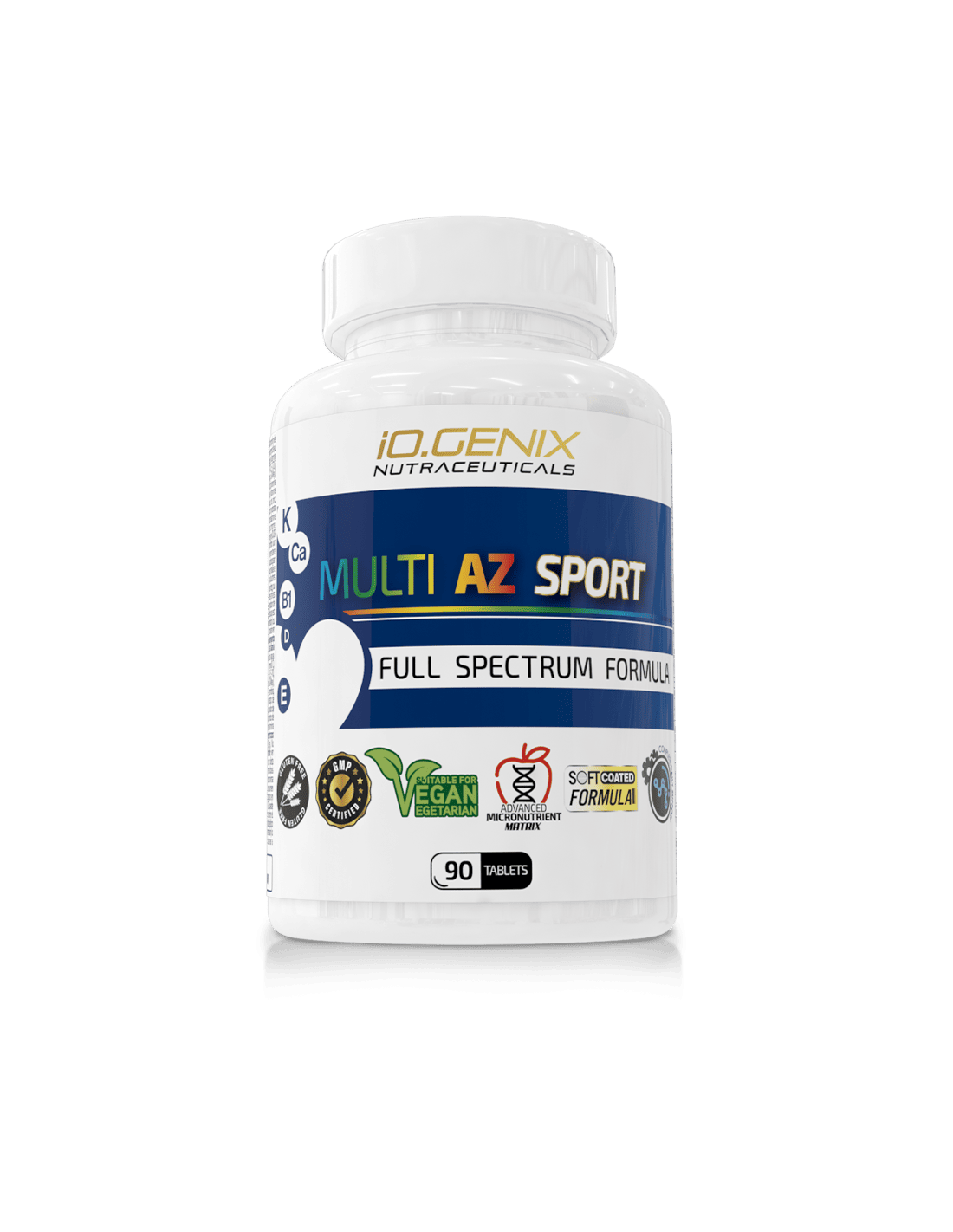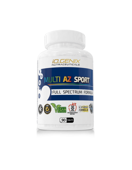 Multi AZ Sport es tu base diaria de micronutrición para entrenar con cabeza. Una fórmula multivitamínica–mineral en tabletas que cubre de forma sencilla los VRN de vitaminas esenciales (A, C, D3, E y grupo B, incluida biotina y ácido fólico) y minerales clave como magnesio, calcio, zinc, selenio, yodo, hierro, cobre, manganeso, cromo y molibdeno.