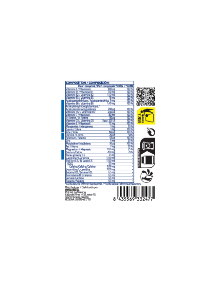 Las vitaminas B1, B2, B3, B5, B6, B12 y C, contribuyen al metabolismo energético normal útil para tu día a día.