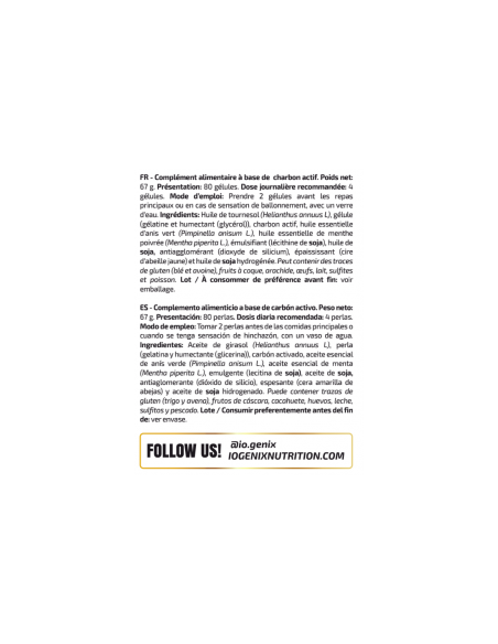 Dentro de la línea healthy series desde iO. GENIX os presentamos una fórmula única de carbono activo junto a un aceite esencial de menta (Mentha piperita L.) y anís verde (Pimpinella anisum L.).