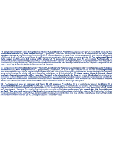 Complemento alimenticio en polvo a base de tres formas de magnesio (bisglicinato, citrato y malato) con vitamina B6, formulado para apoyar el funcionamiento normal del sistema nervioso y muscular*.