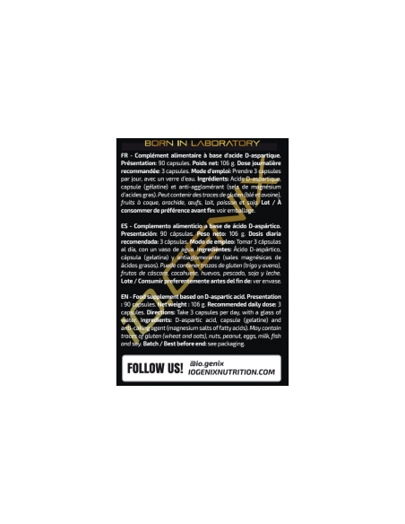 Desde iO.GENIX os presentamos un suplemento a base de ácido aspártico, se trata de un aminoácido no esencial presente en distintos alimentos pero no siempre se consigue llevar a las cantidades adecuadas de este a través de la dieta. Por ello, hemos elaborado un suplemento a base de este aminoácido para obtener todas sus propiedades, utilizando una materia prima de primera calidad.