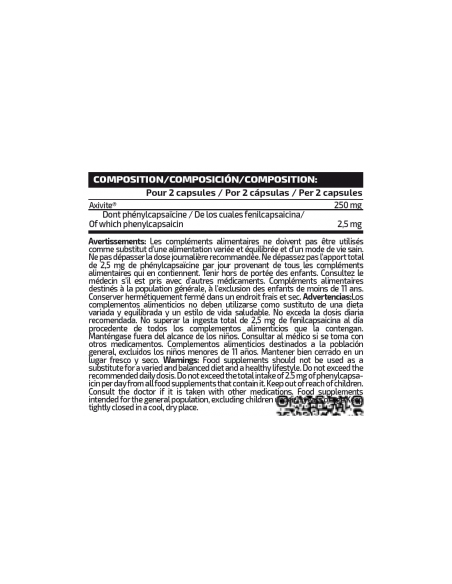 *2 No superar la ingesta total de 2,5 mg de fenilcapsaicina al día procedente de todos los complementos alimenticios que la contengan