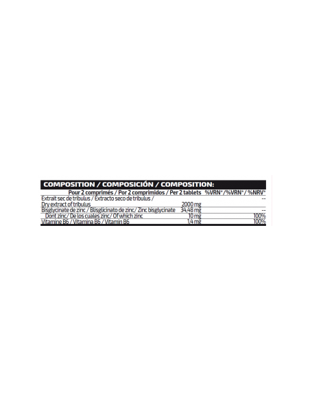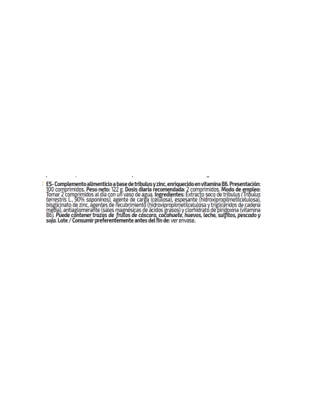- Fórmula centrada: tribulus (90 % saponinas) + zinc bisglicinato + vitamina B6.
