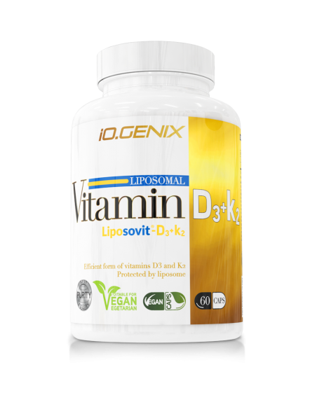 La Vitamina D3+K2 Liposomal es un complemento alimenticio formulado con vitamina D3 y K2 encapsuladas en liposomas para favorecer su estabilidad y transporte en el organismo.