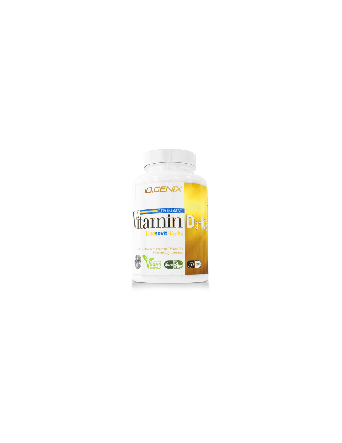 La Vitamina D3+K2 Liposomal es un complemento alimenticio formulado con vitamina D3 y K2 encapsuladas en una matriz liposomal, un sistema diseñado para favorecer la estabilidad y optimizar la absorción de estos dos nutrientes esenciales en el organismo.