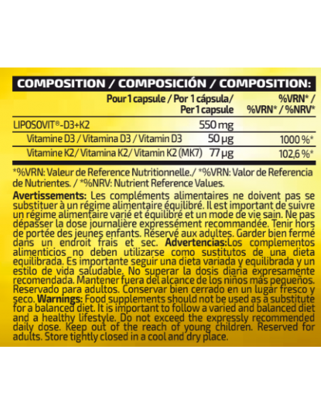 Esta fórmula ha sido diseñada para quienes buscan un aporte eficiente de vitamina D y K en un formato práctico y de alta calidad.