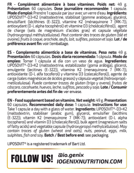 La Vitamina D3+K2 Liposomal ha sido desarrollada con tecnología Liposovit®, un sistema de encapsulación que permite que la vitamina D3 y K2 se transporten en fosfolípidos similares a los de las membranas celulares.